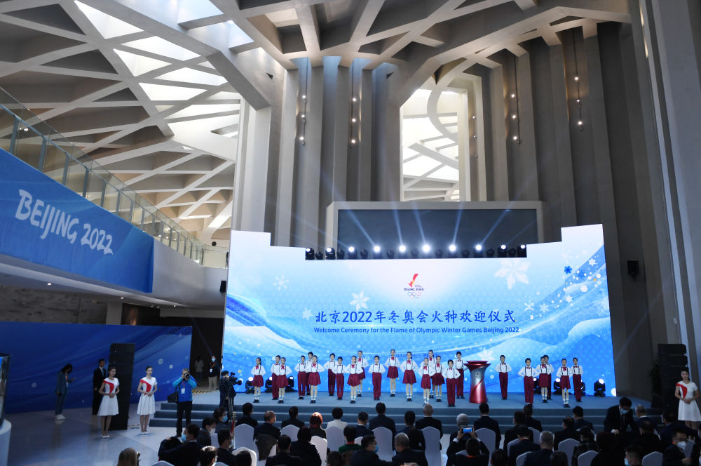 10月20日拍摄的北京2022年冬奥会火种欢迎仪式现场。 新华社记者张晨霖摄