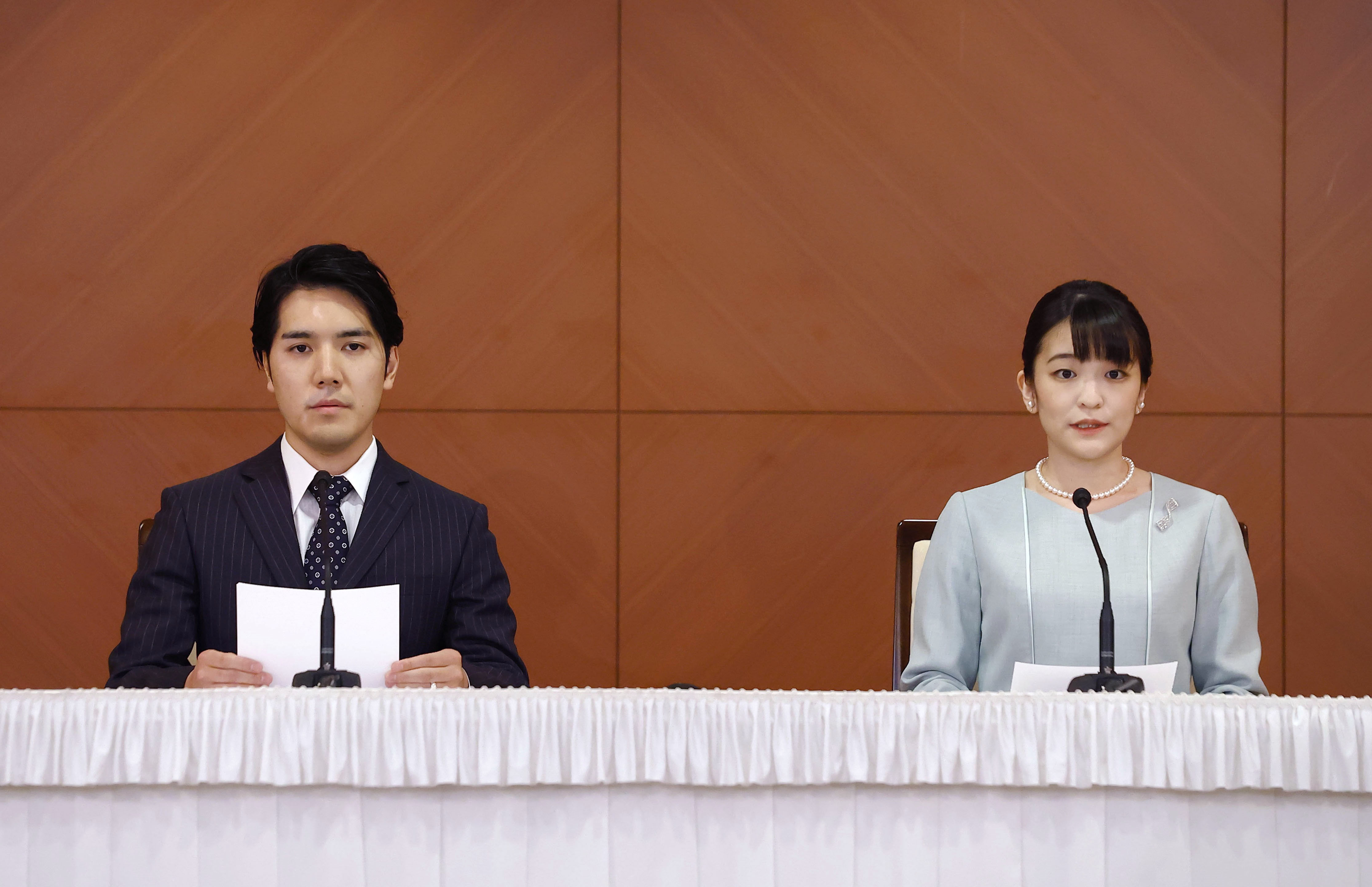 小室圭和真子出席记者招待会(图源:网络)