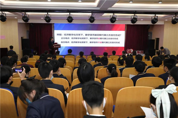 评委们对于辩题的评价、调拨和提问都让我重新认识了数字货币,数字人民币以及“数字人民币国际化”“经济全球化”等概念,让我体会到了在当今时代高中生了解金融知识的重要意义,看到了我国及世界数字化经历的发展前景,当然,也更加期待接下来在经济论坛闭幕式上的辩论赛。