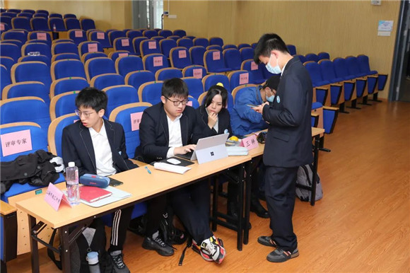 在第一轮角逐中脱颖而出的反方战队也在小剧场进入白热化的复赛比拼,就“在数字货币推广的新形势下,数字货币与第三方支付能否长期和谐共存?”这一论题进行阐述。每支队伍在同一时间段内完成视频录制,结束后一同在小剧场进行观摩、相互切磋。在此过程中,我们有幸邀请了匡志宏女士、罗涛先生、郑莆怀女士、杨文强老师四位评审专家进行评分。四支队伍不约而同地都选择“电子货币会与第三方支付共存”的观点,并通过充分的资料引用,对所持观点进行说明,不仅语言表达流畅,而且结构清晰逻辑强,具有强烈的感染力和说服力。在观摩完四所学校的精彩表现之后,四位评审专家还对各所学校的相关辩手进行了提问,观察各位辩手的临场反应能力以及知识储备。但与其说是提问,其实更是相互之间的探讨,比如市场经济中的公信力问题、全球货币泛滥问题、政府对于数据和货币的管控问题、货币私密性及安全性问题等等。在各位专家们简洁凝炼的提问与一针见血的见解中,各位辩手们对于数字化经济、数字货币、第三方支付平台等方面有了更全面、更深入的了解。最后,经过评委们的讨论,反方最佳战队由上理工附属中学摘得桂冠。