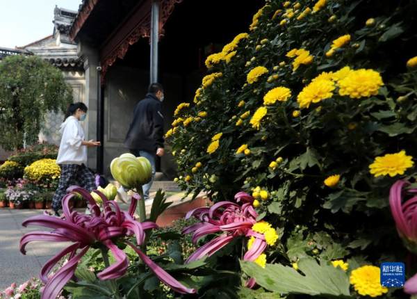 近日,江苏苏州狮子林“玉露金霜 秋菊雅韵”主题菊展启幕,园内菊香四溢,吸引游客观光赏菊。