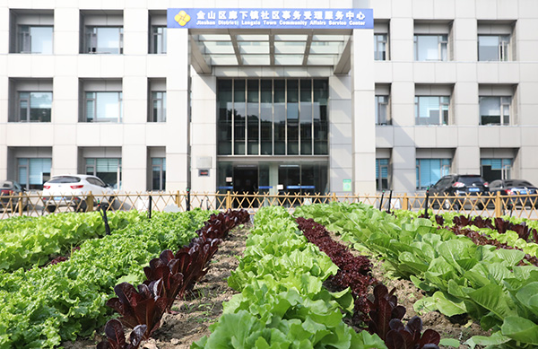 金山廊下政府大院花坛演绎“菜-稻-菜”轮作模式