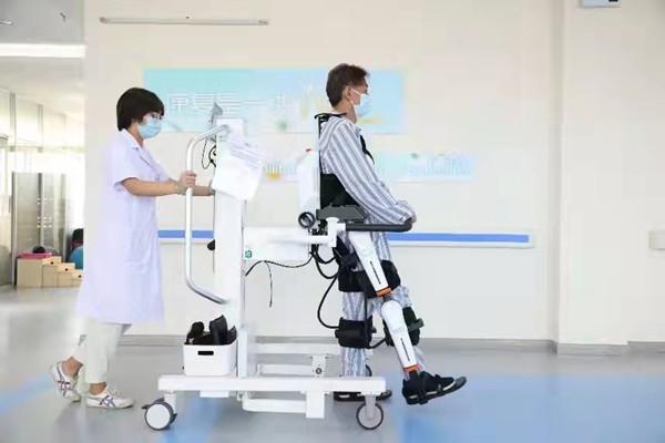 图说:患者使用傅利叶康复机器人进行社区康复。孙云摄