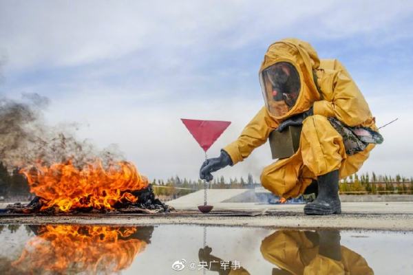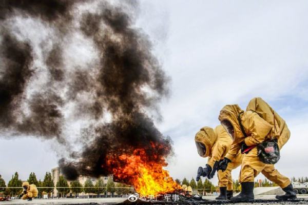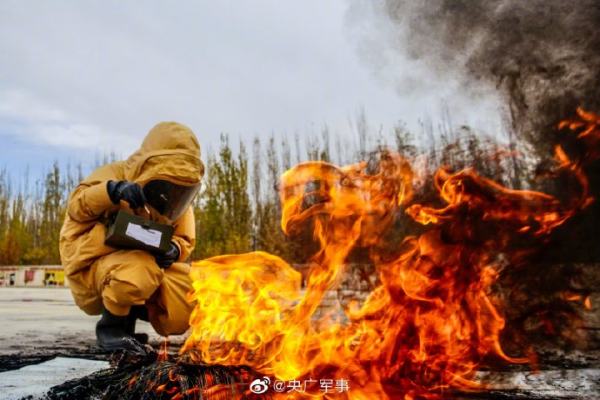 近日,武警新疆总队某机动支队组织官兵围绕侦察、化验、洗消等内容开展了一场核生化事故处置演练。防化兵的训练就是这么“燃”!