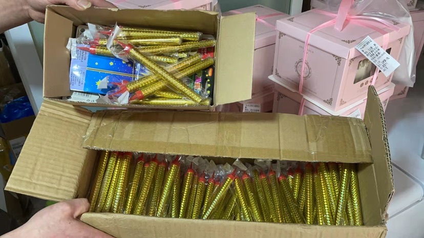 10月23日,普陀警方通过对辖区内蛋糕店、文具店逐一进行检查,共查获售卖冷烟花店铺 11 家,并分别予以行政处罚,收缴冷烟花共计2950余支。