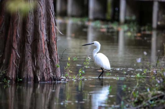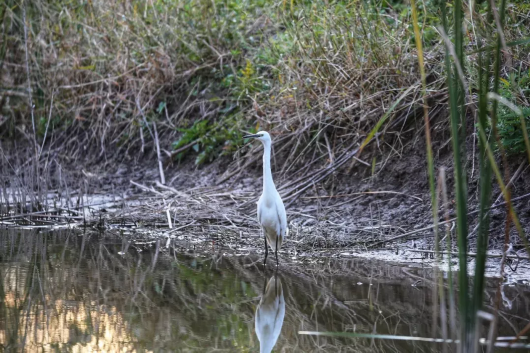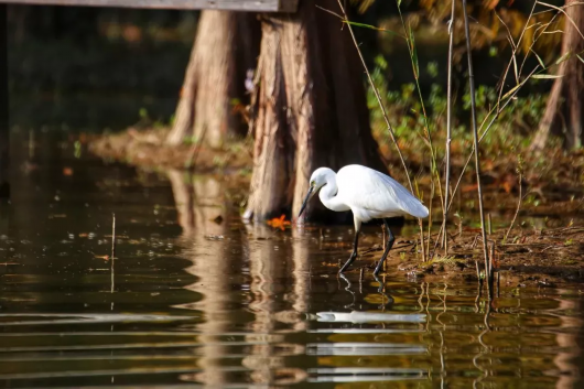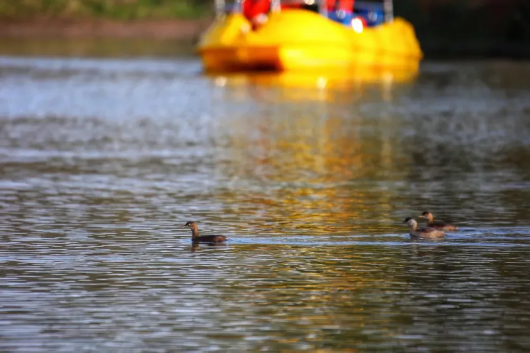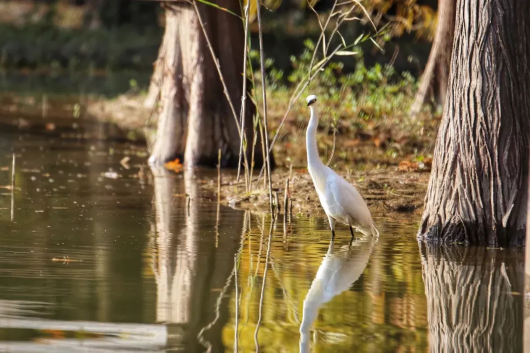 为近距离欣赏这自然美景,景区疏浚了一条贯穿34条淤积潮沟,总长2000多米的水路,可供游客乘船进入水森林腹地,感受与陆上栈道迥异的独特景致。穿梭林间,有极大几率可以遇见各色鸟类,它们或嬉戏追逐,或水中觅食,或四处张望,好不灵动。