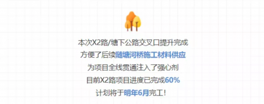 11月23日下午13:00,随着路障、导行牌的移除,塘下公路(书塘路-石家港路)段正式开放通行,标志着X2路/塘下公路交叉口提升工程完成!