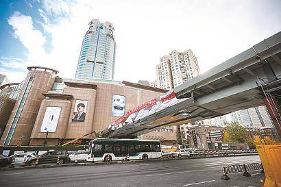 横跨虹桥路、连接东方商厦与港汇恒隆广场的天桥合龙 徐家汇连廊二期主体结构完工