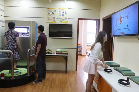 为了突出互动性与参与性,杨浦区消防体验馆摒弃了传统“展板+实物”的展示形式,馆内90%的展示内容采用了互动体验型的实训装置。VR家庭隐患排查游戏,包含客厅、厨房、卧室三个场景,共有15处火灾隐患,现场模拟真实火灾现场,参观者佩戴VR眼镜,通过亲身体验掌握家庭火灾隐患检查、厨房消防安全、日用化学危险品储存和使用等消防知识,以及初起火灾扑救、火场疏散逃生等消防技能。