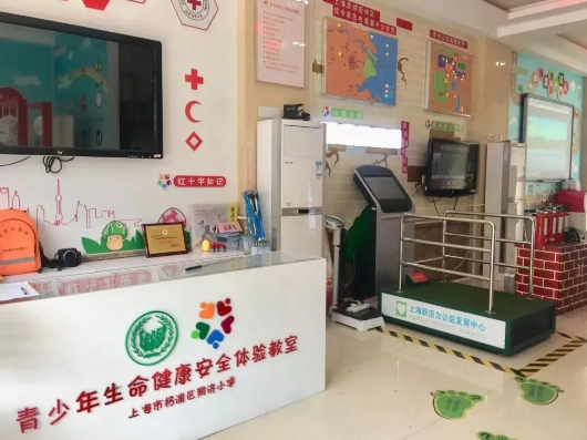 青少年生命健康安全体验教室是上海首个中国红十字会总会生命健康安全体验教室,教室内有地震逃生360度体感台、火灾逃生技能训练区、自身安全保护与报警演练,学校险情应急疏散线路学习、家庭安全拓展区、应急救护与AED培训空间等区域。让学生们在体验教室里了解安全知识,学习自救技能。体验教室创设了生命健康认知、创伤救护、CPR与AED、火灾逃生、交通安全等体验模块,注重展示和体验的启发性、互动性和趣味性。