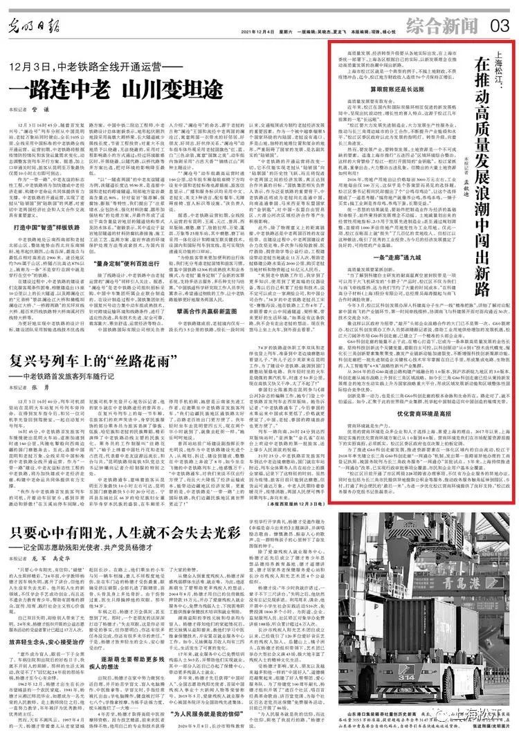 锚定“创新”二字,松江聚焦高质量发展,建设长三角G60科创走廊,推进产业链创新链融合,先进制造业水平不断提升,发展成就引得央媒纷纷聚焦报道。12月3日,新华每日电讯刊发《硬功夫“啃下”硬核科技,高规格“拥抱”高端产业,看松江如何成为上海高端制造“新标杆”》。12月4日,光明日报刊发《上海松江:在推动高质量发展浪潮中闯出新路》。一起来看↓