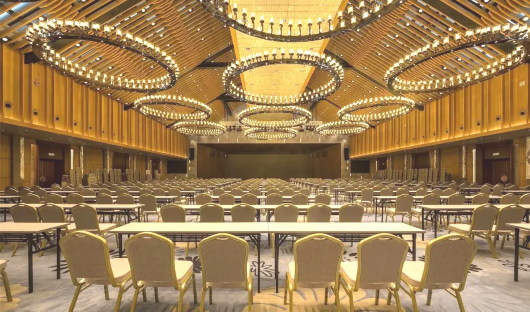 可容纳500人左右,适合开展商务会议,举办年会等活动。