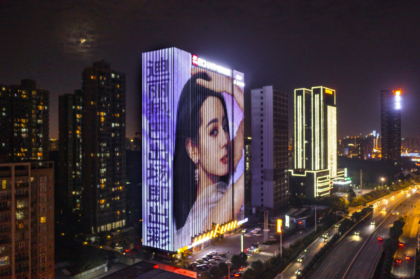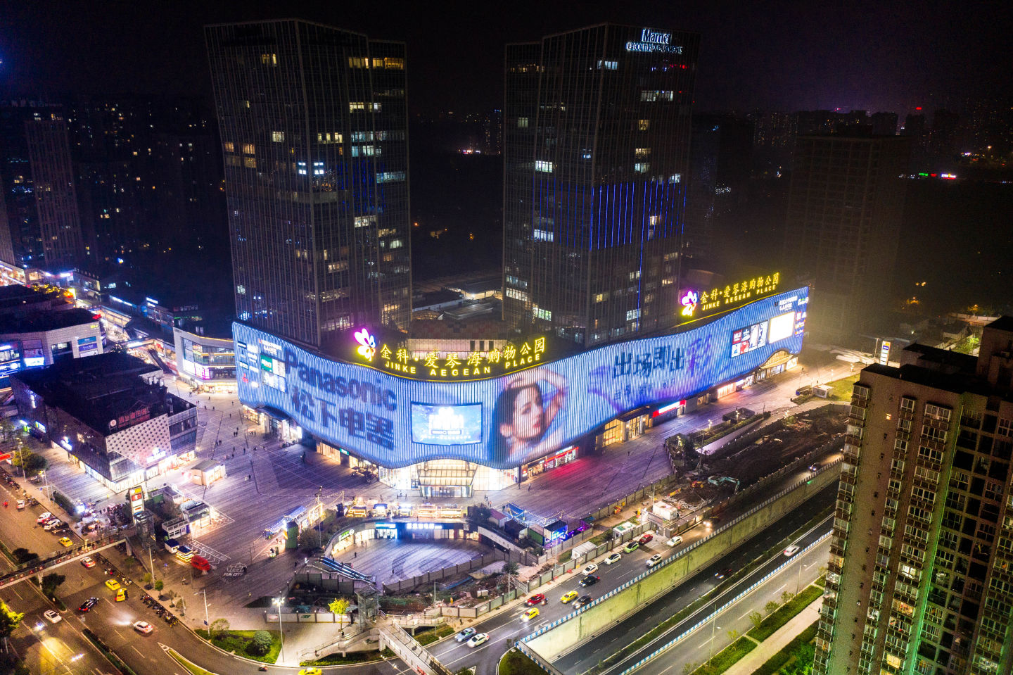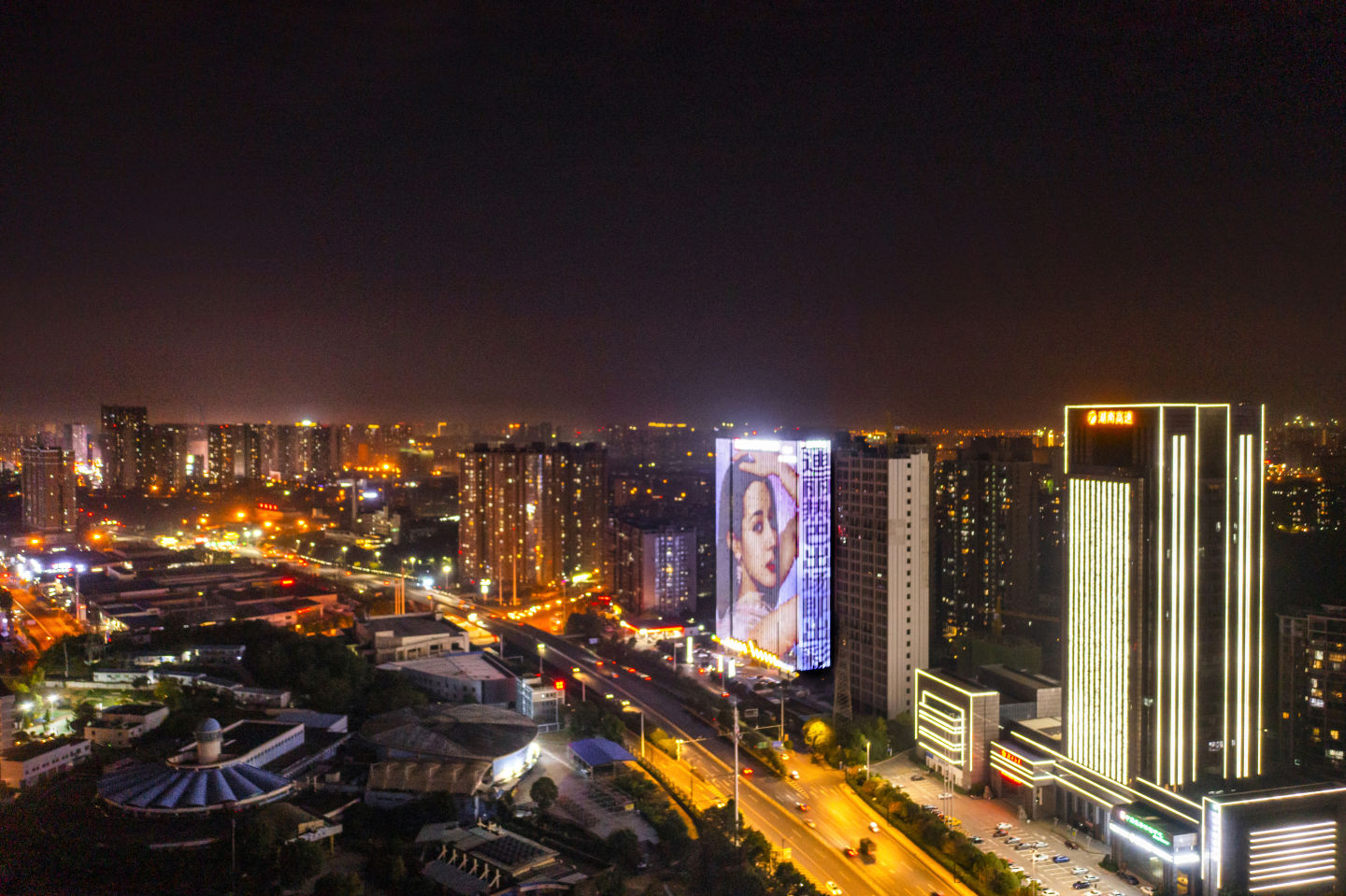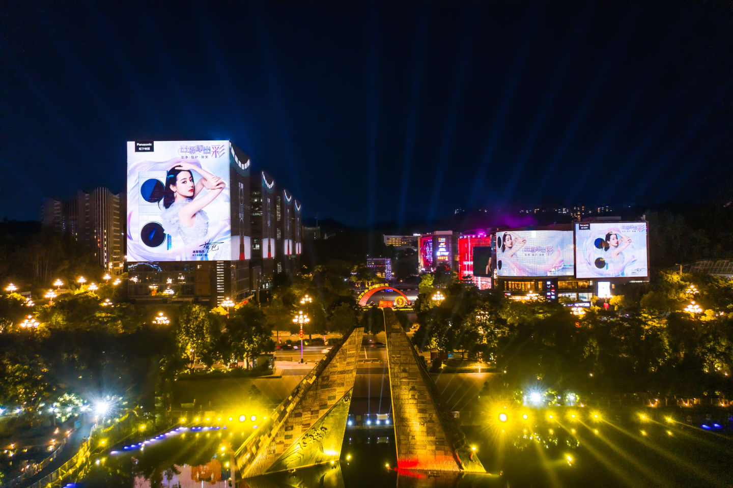 松下x迪丽热巴x地标马克户外广告地标灯光秀