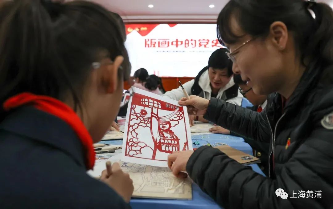 据了解,该校党支部此次“版画中的党史”主题党日活动,是与黄浦区民进业余学校党支部共联共建。“在共同绘制版画的过程中,党团队员学习到丰富的党史故事。”校长余祯介绍,“这是我校党团队一体化学党史系列活动之一,也是全员导师背景下‘好朋友老师’引领学生成长的重要一课。”