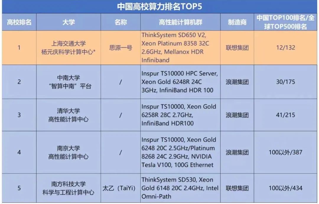 小布了解到,“思源一号”凝结了联想绿色低碳高算力的最新技术成果和建造经验,同时体现了全球卓越的技术水平:高性能计算机总计算力为6千万亿次/秒(双精度),在今年11月发布的全球TOP500高性能计算机榜单上,计算力排名第132位。在中国高性能计算TOP100榜单上,它排名12位,中国高校高性能计算排名第一。