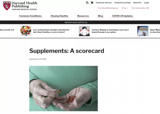 保健品受到不少人的追捧,认为吃保健品可以强身健体,预防疾病。不过也有些人认为保健品就是买一个心理安慰,并没有太多功效。2021年9月,哈佛医学院《哈佛健康》发文,对广大人群是否需要补充目前市场上常见的营养保健品进行了分析。