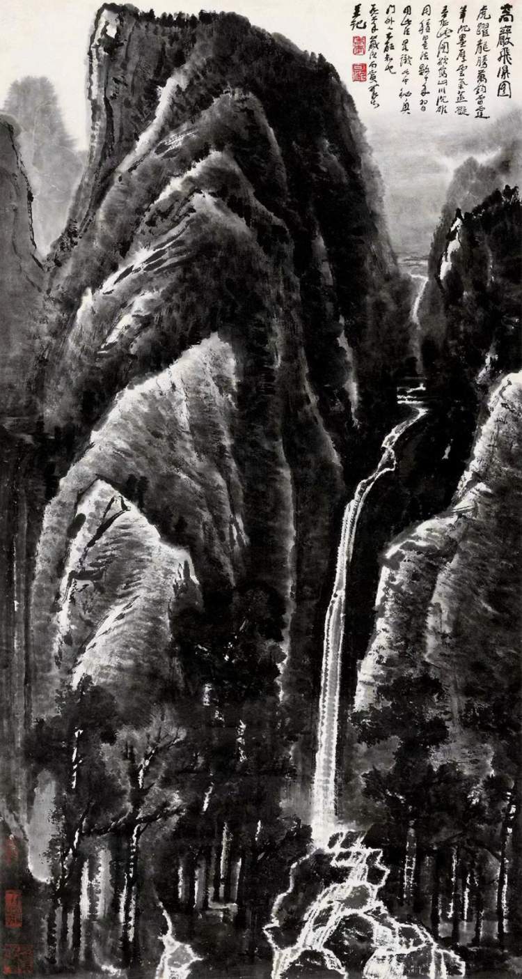 李可染《高岩飞瀑图》