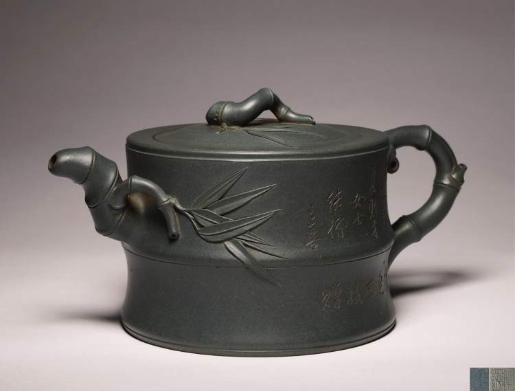 顾景舟制 绿泥竹段壶