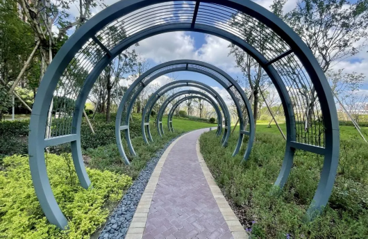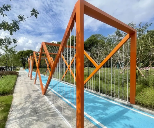 老华泾路及周边区域提升项目为龙吴路以西环城生态公园带的重要建设项目,为连接华泾公园与生态一标段区域奠定了良好的基础。华泾港景观1、2号桥有效贯通了生态七标段范围内的绿道断点,让居民能够享受到怡然自得的绿化景观。