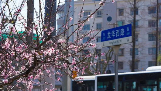 龙华烈士陵园周边绿地景观提升将桃花作为主要树种贯穿,实现“三带一区、四季分明”的沿线绿化景观。龙华(西)路在今年荣获上海市绿化特色道路称号。