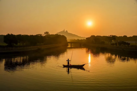 明镜般的湖面映着余晖,青葱的山峰岿然肃立,一只鸟儿划破天际,渔夫忙撑一叶扁舟,追赶余存的温柔。