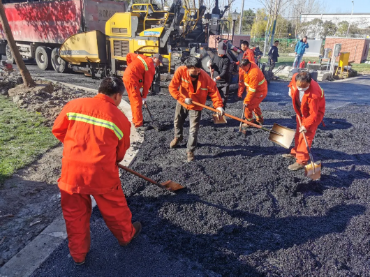 11月底,排水工程雨水泵站区域内的地面道路进行了沥青混凝土的摊铺,完成了泵站建设的最后一道工序。