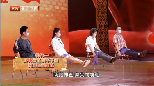 取坐位,两手扶膝,然后依次做下面这些动作: