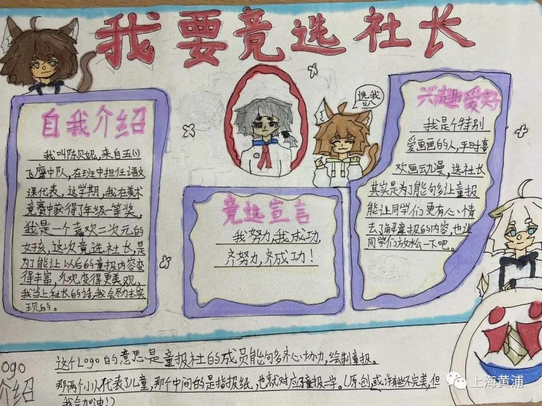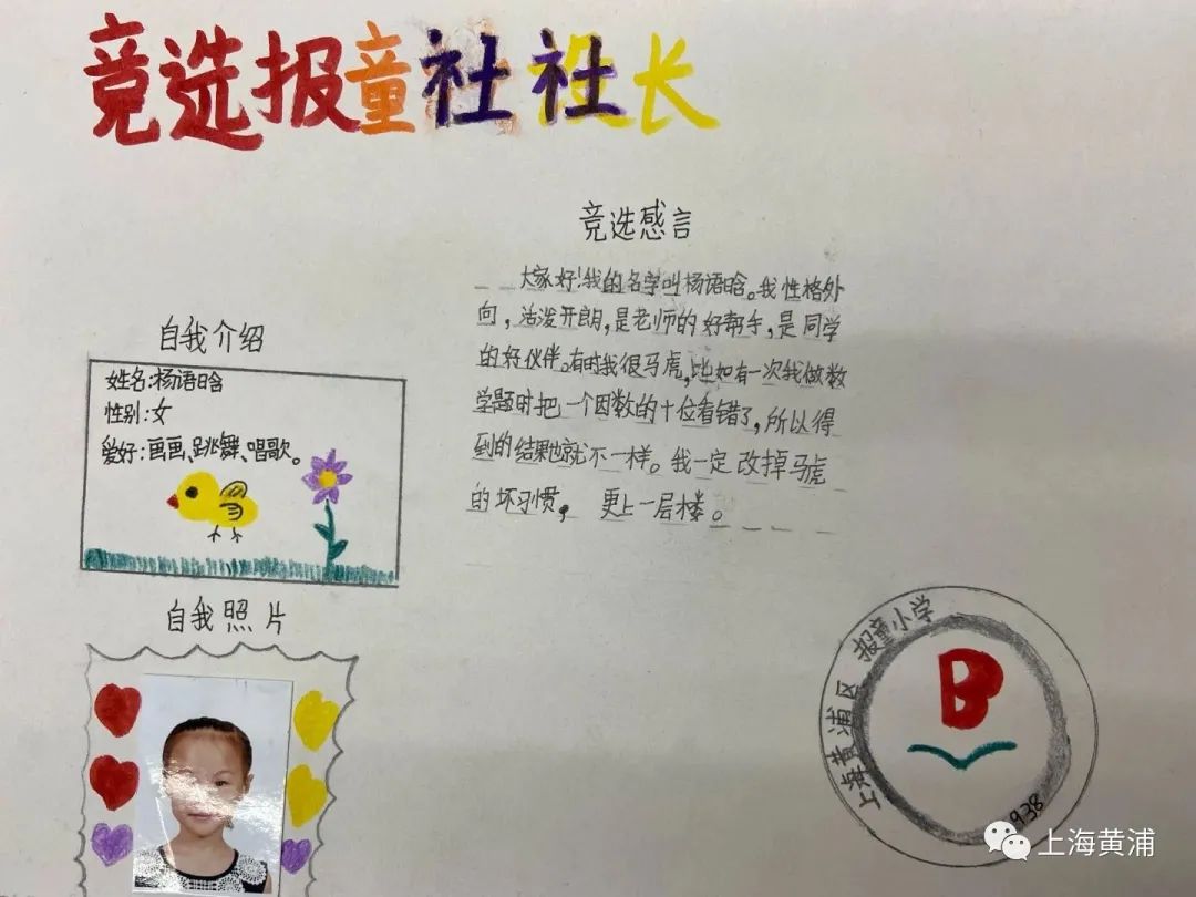 “报童办《童报》”主题式综合实践活动实施至今,小编辑们不仅在“童报社”的空间创意平台积极参加课后看护《童报社》的社团活动,认真完成手写手绘的少先队队报《童报》,还受到《新民晚报》、黄浦融媒体中心的邀请,利用“双减”后的课余时间,走出校园“出差”,参加新民读者日爱心义卖活动、到黄浦融媒体中心参观学习,完成“我是小小媒体人”“我是卖报小行家”的体验。随着童报社的日趋完善,社长选举也成为报报童童们校园生活的新鲜事、有趣事。