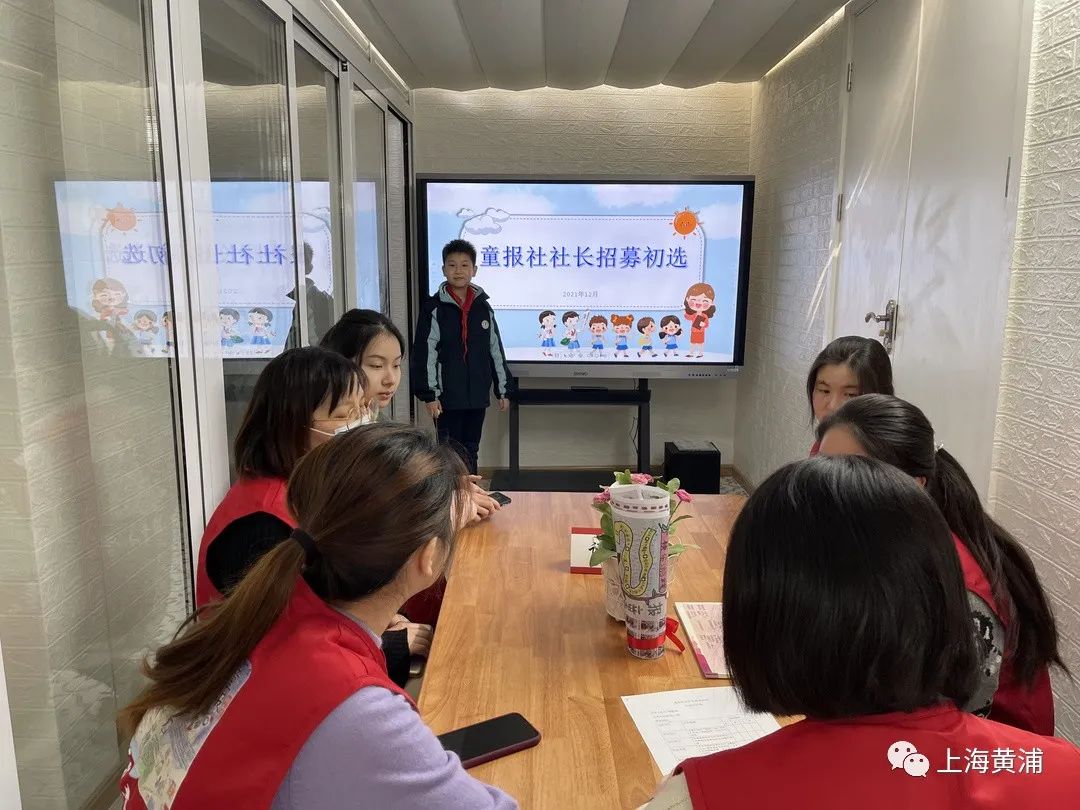 12月6日起,《童报》导师团通过校园大屏幕和红领巾广播宣传小社长竞选活动,并向队员们提出招募需求,得到了同学们的积极响应。不论是三年级的小朋友,还是五年级的大朋友,都通过制作自我介绍、《童报》logo的设计来展现各自在文编和美编上的才能。