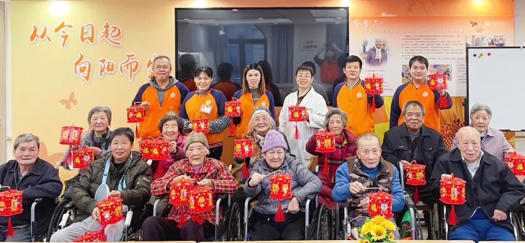 在悦馨第一养老院和悦馨第二养老院里,老人们DIY纸质虎年灯笼,漂亮的灯光在夜晚格外耀眼。
