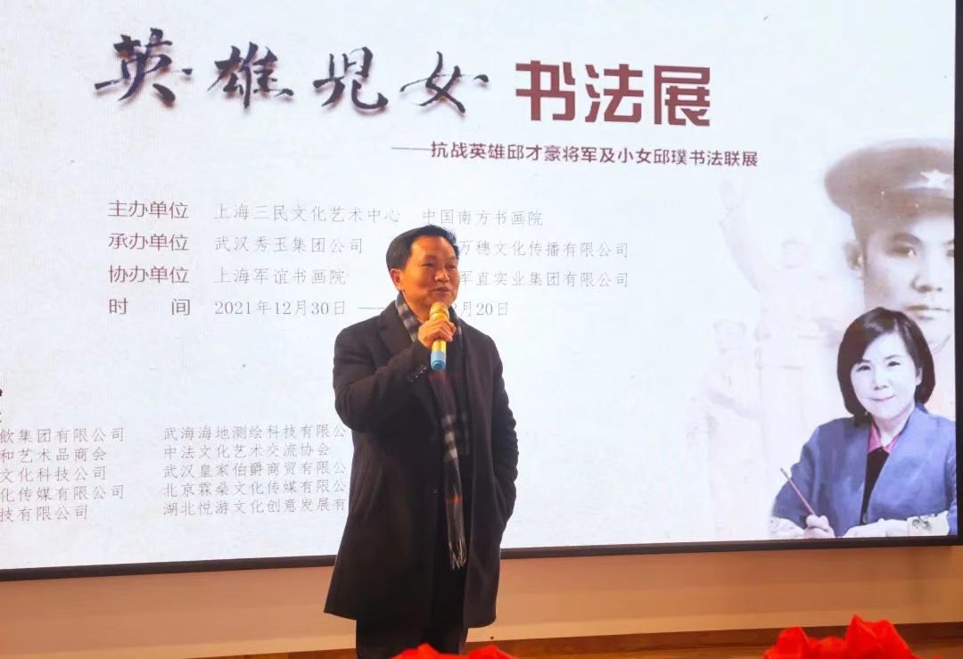 东方网记者曹磊1月4日报道:近日,“英雄儿女书法展——抗战英雄邱才豪将军及小女邱璞书法联展”的开幕式在上海崇明江南三民文化村举行。