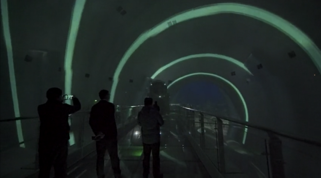 三个无缝拼接的沉浸式球体组成超大观影厅,每个影厅直径高达40米,表面积达4000平方米。