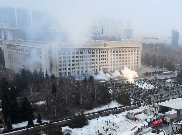 目前阿拉木图处于一片混乱之中。俄塔社消息称,上千名示威者来到位于阿拉木图的总统宅邸并纵火,使其“陷入火海”。此外,市长办公室所在的市政府大楼“从上到下燃烧”,检察官办公室也被点燃。社交媒体上的视频显示,总统宅邸散发浓烟。