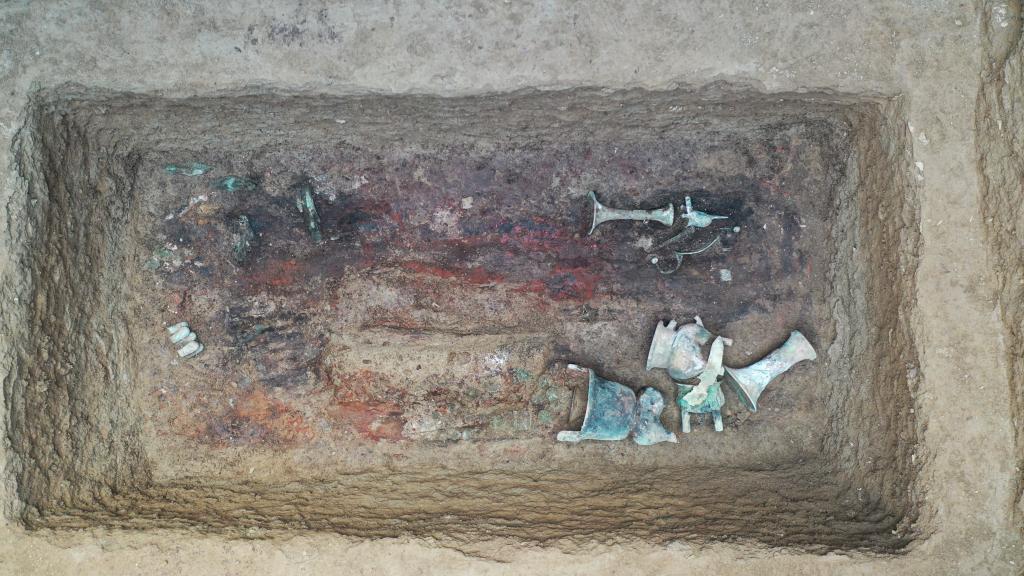 考古人员在此共发现商周时期房基18处,墓葬24座,包括一座“中”字形大墓,车马坑4座共计6辆车,出土一批造型精美的青铜器、玉石器、骨蚌器、车马器等。