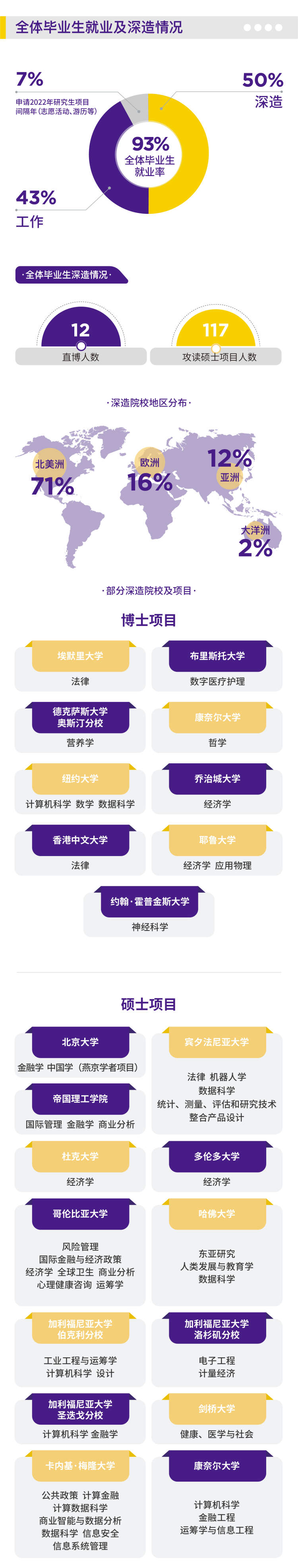 其中,12人在本科毕业后直接攻读全球顶尖博士研究生项目,117人攻读硕士研究生项目。