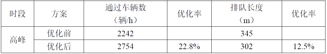 2、高峰期间,北进口单位小时的通过车辆数由2242辆/小时提升到2754辆/小时,通行车辆数提高22.8%