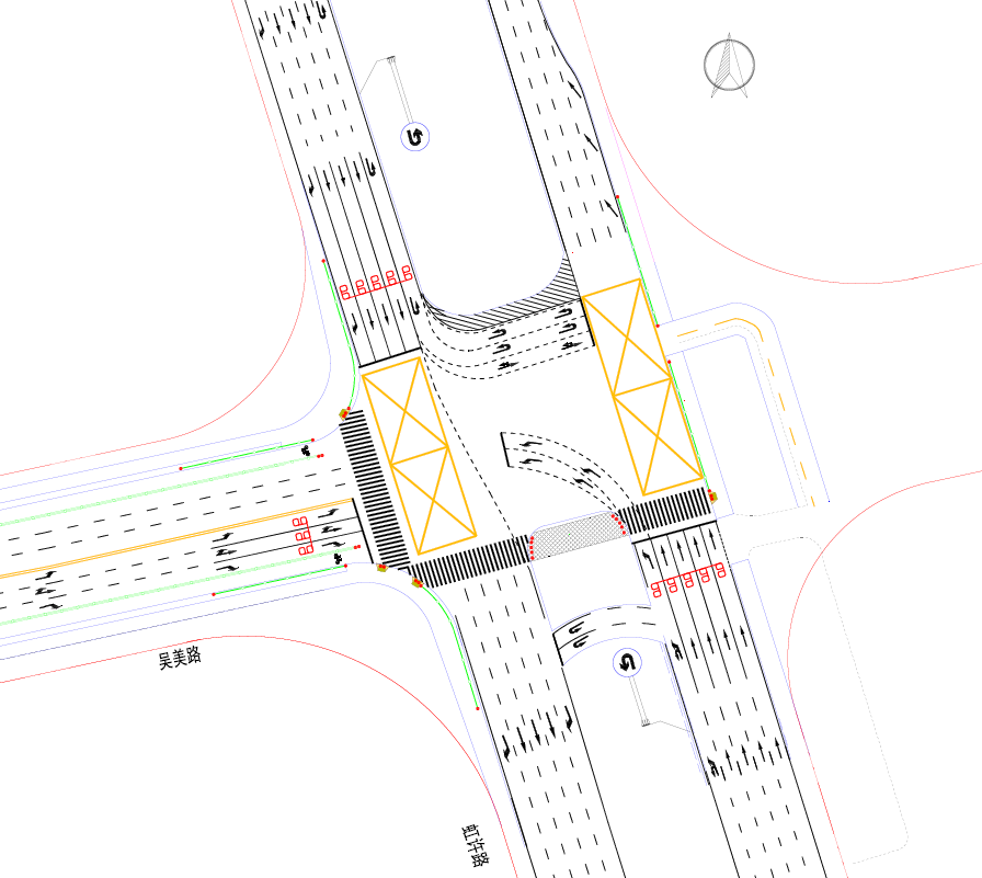 (3)北进口掉头流量较高,将最内侧两条车道改为掉头车道,并增加掉头时长