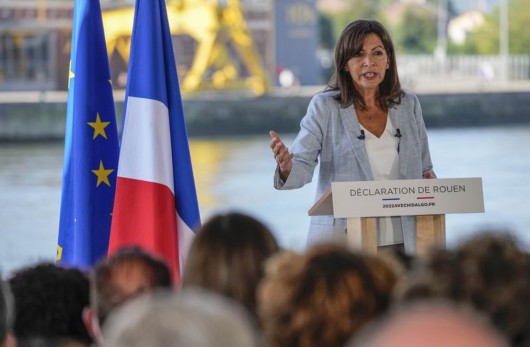 2021年9月12日,法国鲁昂,巴黎市长安妮·伊达尔戈(Anne Hidalgo)在法国西部的鲁昂发表讲话,伊达尔戈宣布参选法国总统。