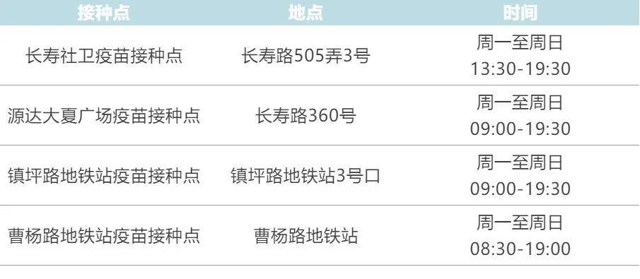 当然,除了M50创意园专场长寿路街道其他4个固定接种点位依然“在线”。