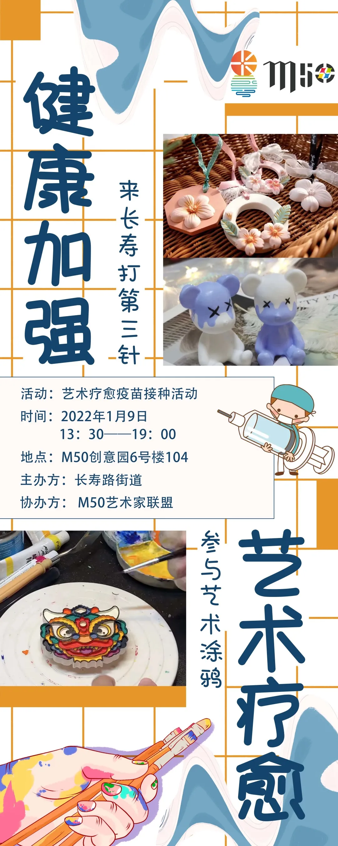 M50自由职业艺术家联盟得知全市正在如火如荼地开展第三针加强针疫苗接种工作也主动请缨,积极发动园区艺术家和书法家们献计出力,希望能用艺术+公益的力量来吸引公众关注和支持现场将开展迎春写福字活动。