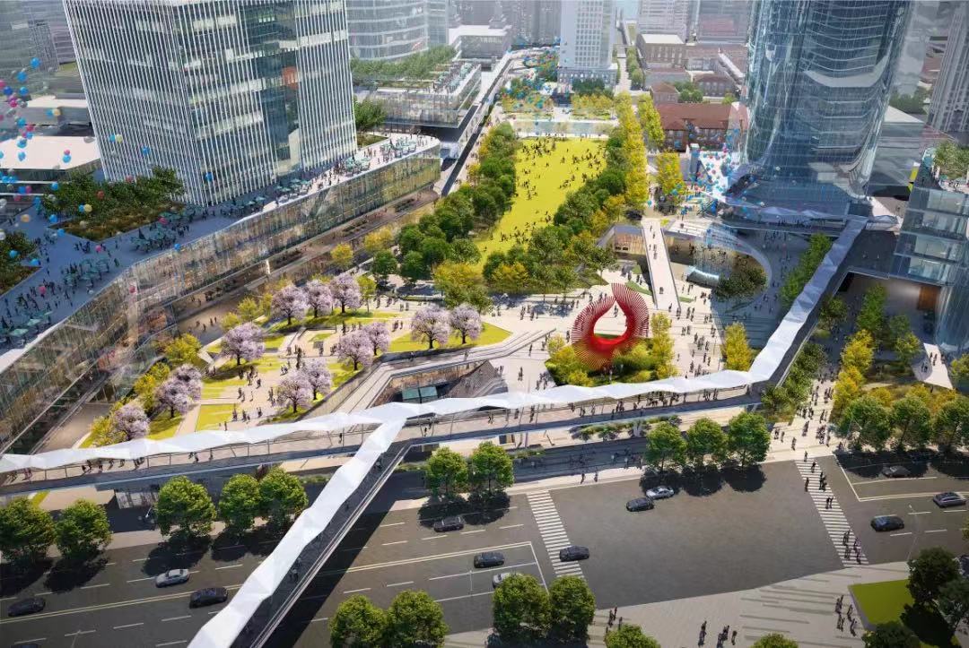 北外滩集团有关负责人介绍,北外滩核心区中央绿轴设计范围约6万平方米,将以生态格局引领城市更新为基础理念,构建全新的“绿地+”城市界面。