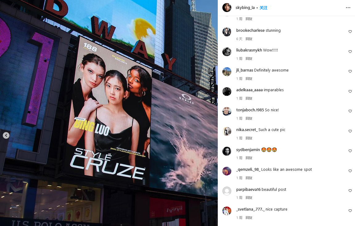 当地时间1月13日,他们先在海外社交媒体平台Instagram上宣布了这组照片登上美国纽约时代广场大屏的消息,但海外反响平平,没多少人关注,好在仅有的几十条评论倒都是清一色的夸赞。