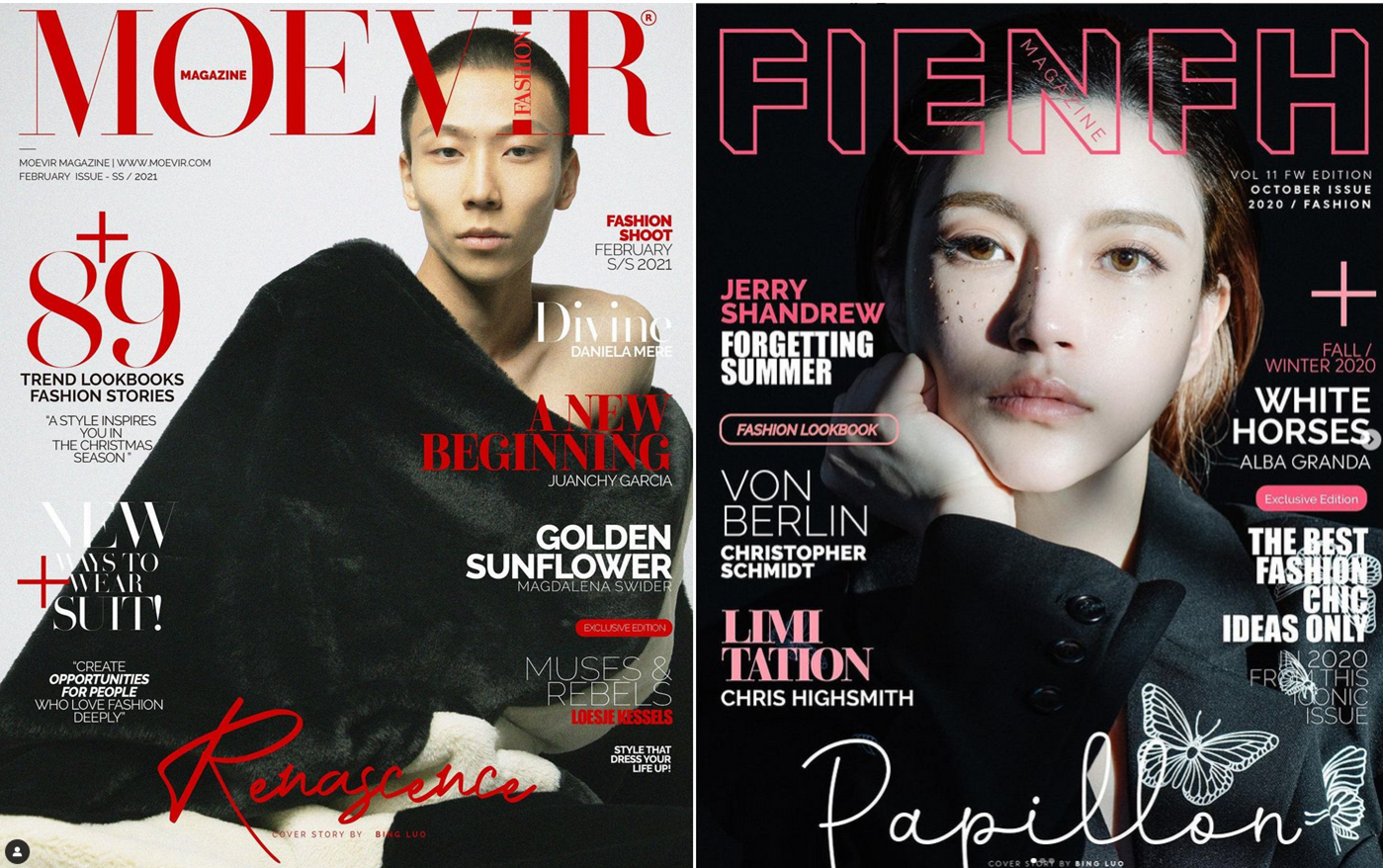 其中,他参与的比较有名的两个项目,分别是意大利时尚奢侈品杂志《FADDY》和法国时尚美容杂志《MALVIE》的封面拍摄工作。