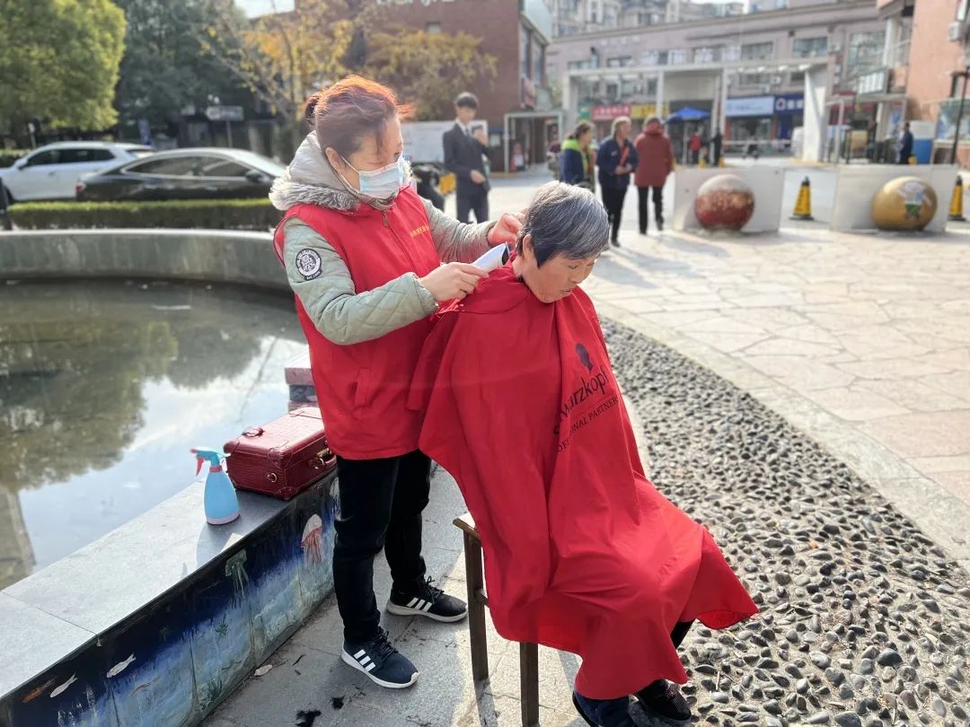 爱心理发师手拿剪刀利落地为前来理发的老人修剪头发。虽然只是简简单单的发型,却“剪”出了大家的笑容,也得到了居民的肯定。