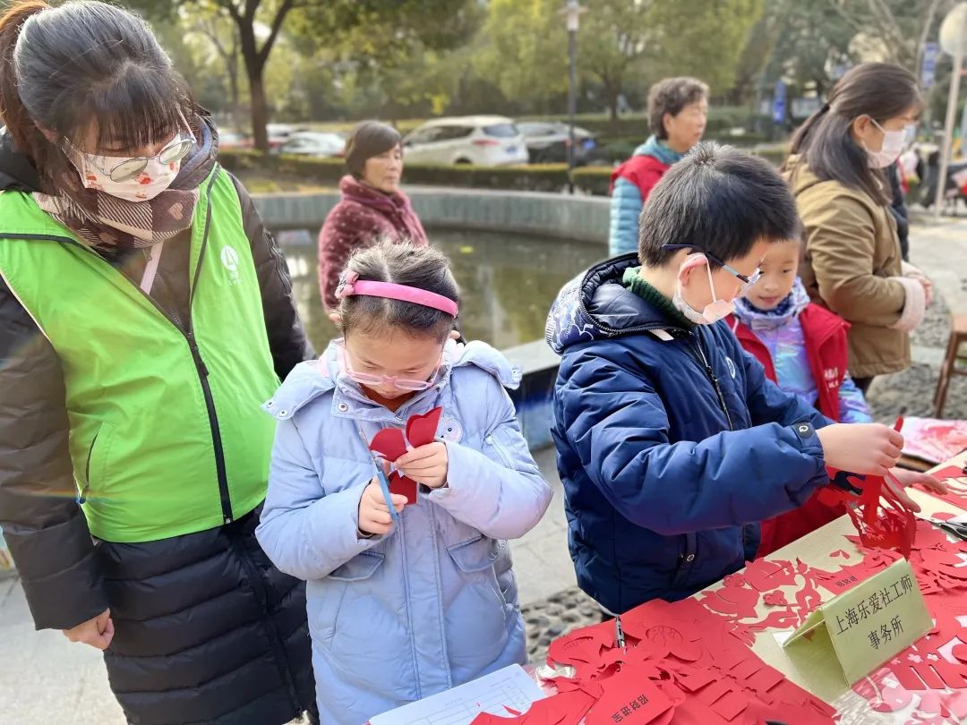 一早,居民们三五成群地来到了活动场地,海尚集市便民服务摊位人头攒动。磨刀、义剪、量血压、花卉置换……家门口种类丰富的便民服务为小区居民提供了便利。为营造浓厚的新春氛围,现场也设置了送福、写春联、剪纸、手工制作灯笼等活动,让大家在新春佳节来临之际感受到满满的温暖与祝福。