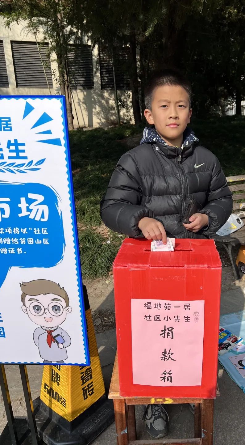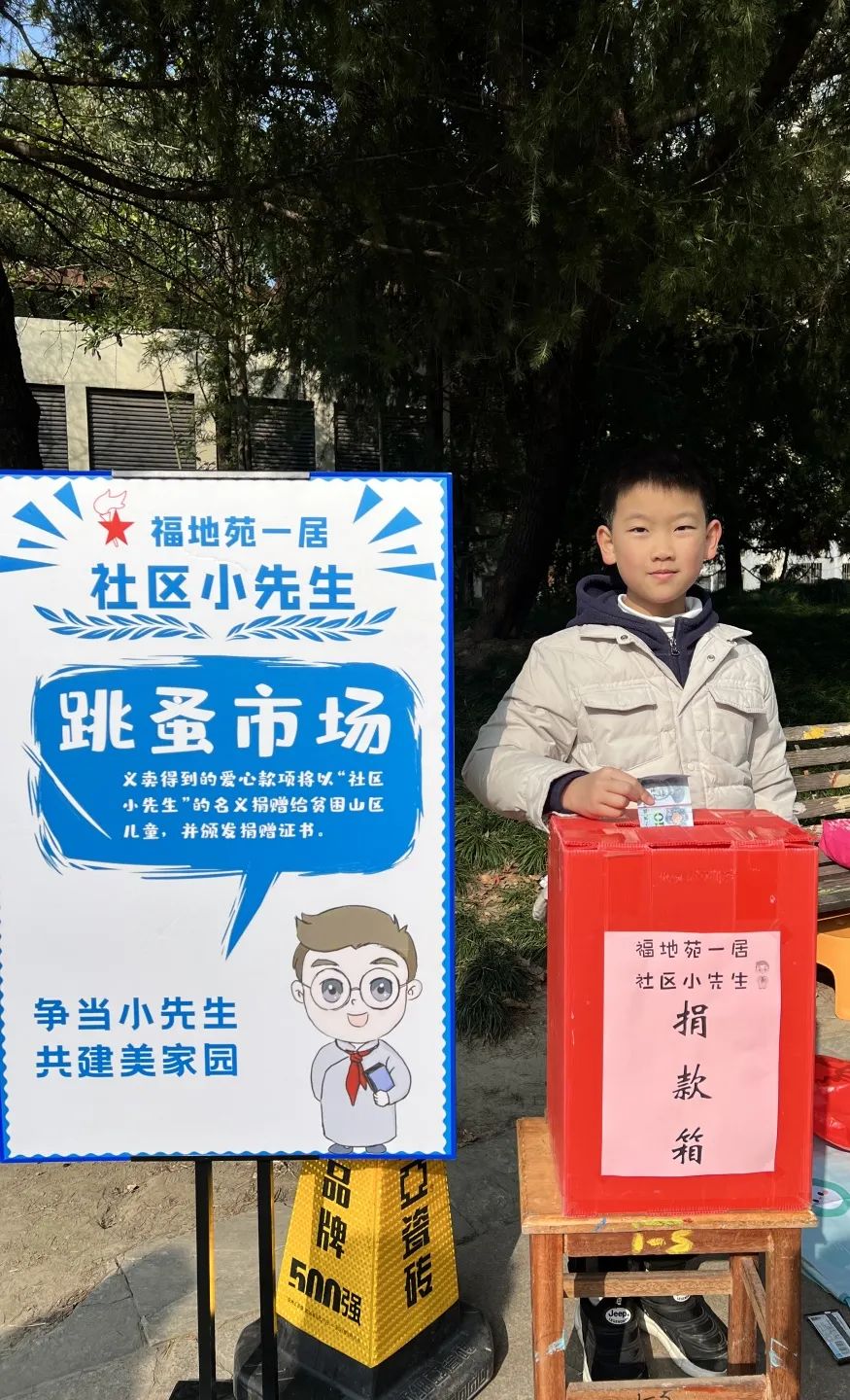 活动现场,小先生们坐在自己的摊位前,热情地招揽往来的顾客,推销自己的商品,耐心为顾客说明玩具的功能、书籍内容等等。“跳蚤市场”活动通过以物换物的形式,发挥个人闲置物品的余热,让孩子们在交换中学会沟通、学会诚信,从劳动中体会到创造价值的乐趣,获得生活实践经验。收摊后,小先生们将义卖所得款项投入捐款箱内,将活动意义升华,将满满爱心传递。