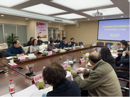 区新闻办、区商务委、区财政局、区人力资源社会保障局、区市场监管局、区金融办、区大数据中心分管领导,区旅游协会负责人,文旅企业代表参加会议。