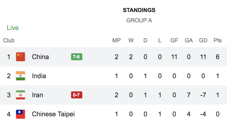 同组的印度女足对阵中国台北女足,由于赛前印度队多名队员感染新冠病毒,未能通过检测,导致比赛受到严重影响。