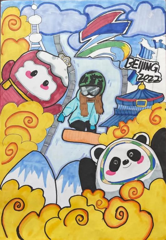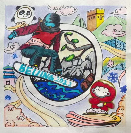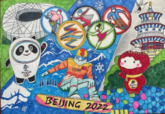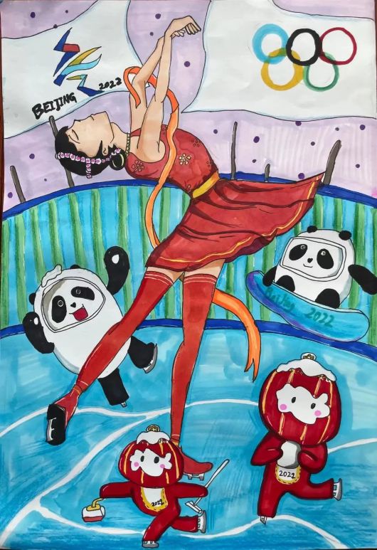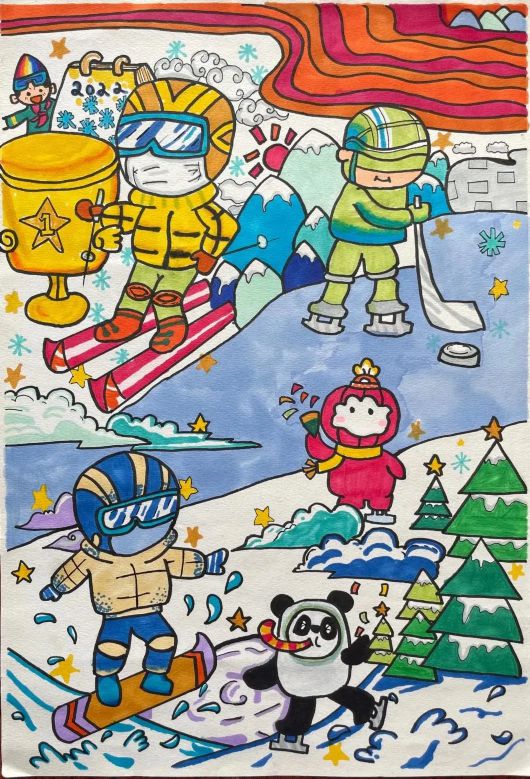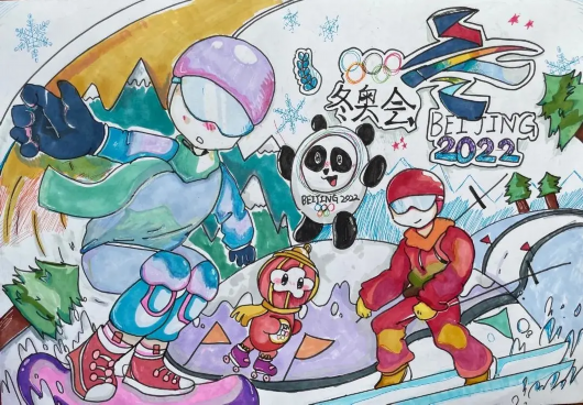 随着北京冬奥会的临近,宝山家庭对冰雪运动的关注不断升温,幼儿园小朋友、小学生、中学生、成年人等将心中的冬奥会以浓厚的色彩和传神的笔韵深情展现出来。