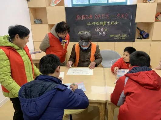 冬奥作幕画为媒,社区家庭在各级妇联的带领下,孩子在家长的带领下,你构图、我填色,在欢声笑语中、在分享心愿中共同完成作品。宝山妇联的文明实践活动通过一个一个“粘着泥土带着露水”微活动,促进社区居民交流、凝聚家庭力量、增强治理能力。